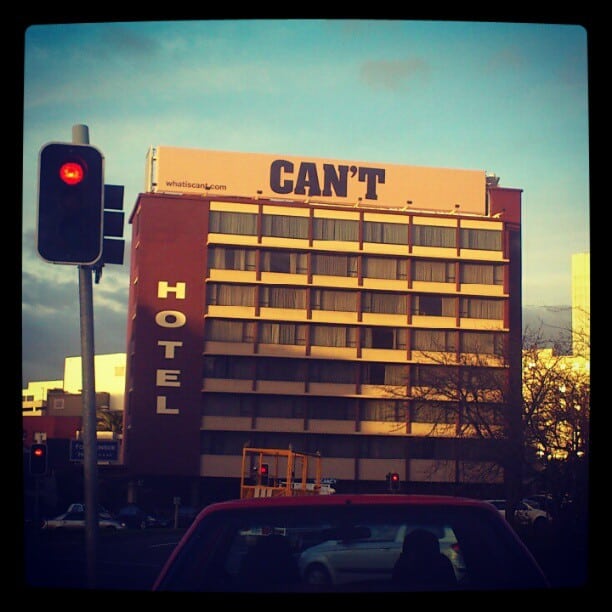 Something else caught my eye on the way to work this morning. On top of this hotel at the busiest intersection in Hobart – the ABC roundabout- there’s a new billboard: