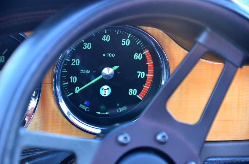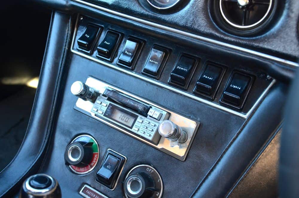 Inside is like a 1970’s gentleman’s club but without the funky colours or the shagpile carpeting. It’s pure comfort in classic black. The only repair considered necessary is one of the seams in the black leather driver’s seat. The rest of the inside has a genuine 40-something-year-old patina that’s just fantastic.
