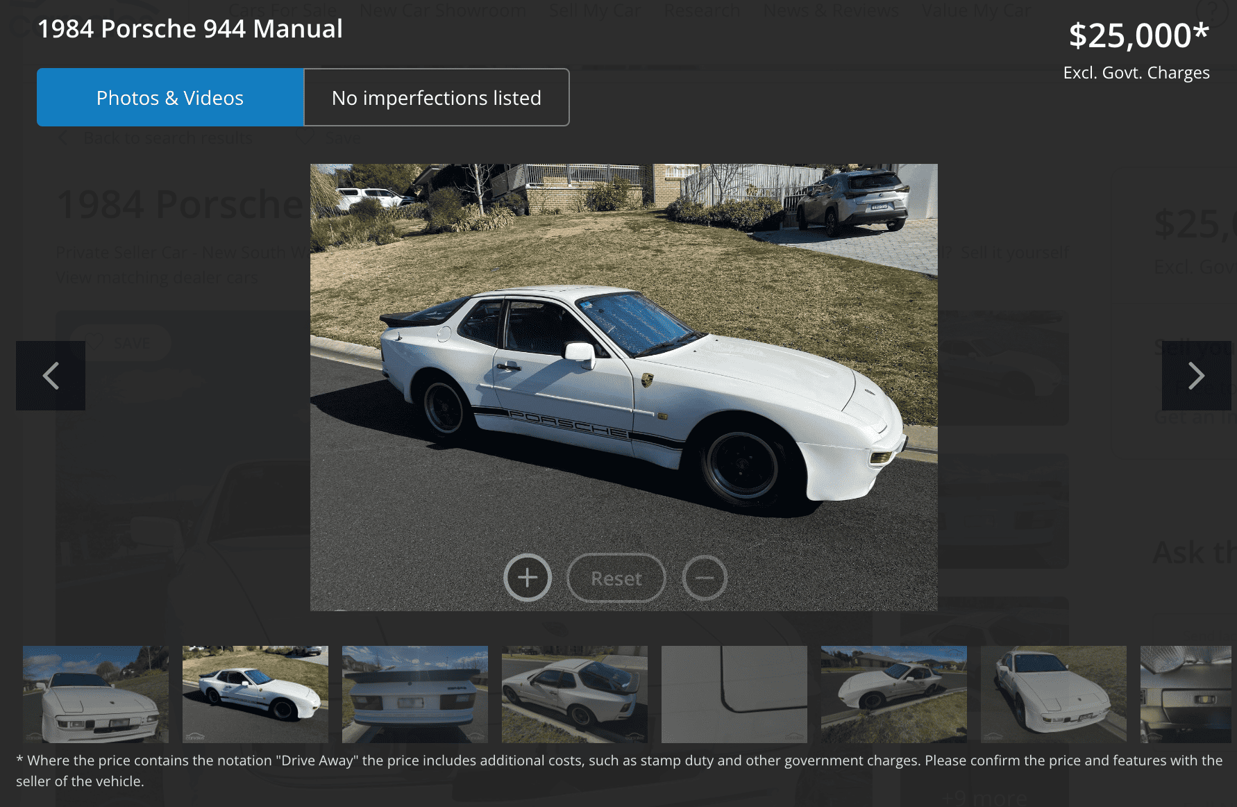 At least that one’s a 5-speed manual. The cheapest automatic Porsche 944 on Carsales right now is $35K!! Thirty-five gorillas for that 8-valve engine mated to a 3-speed automatic?????