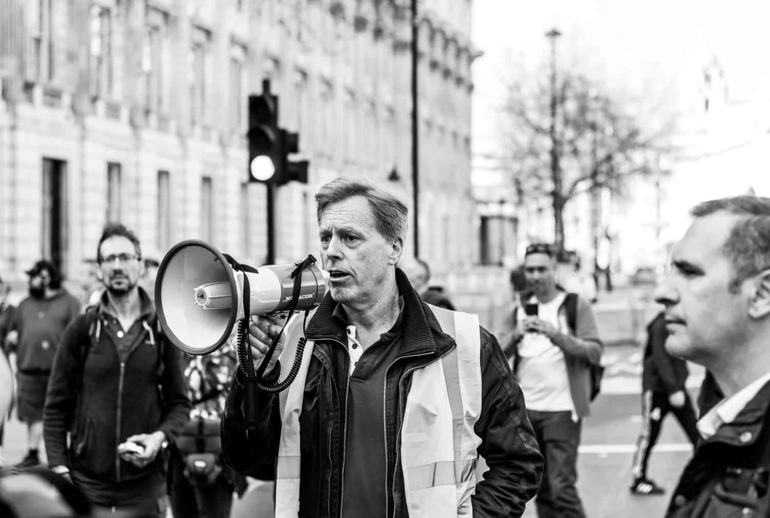 More megaphones. This one was outside Downing Street.