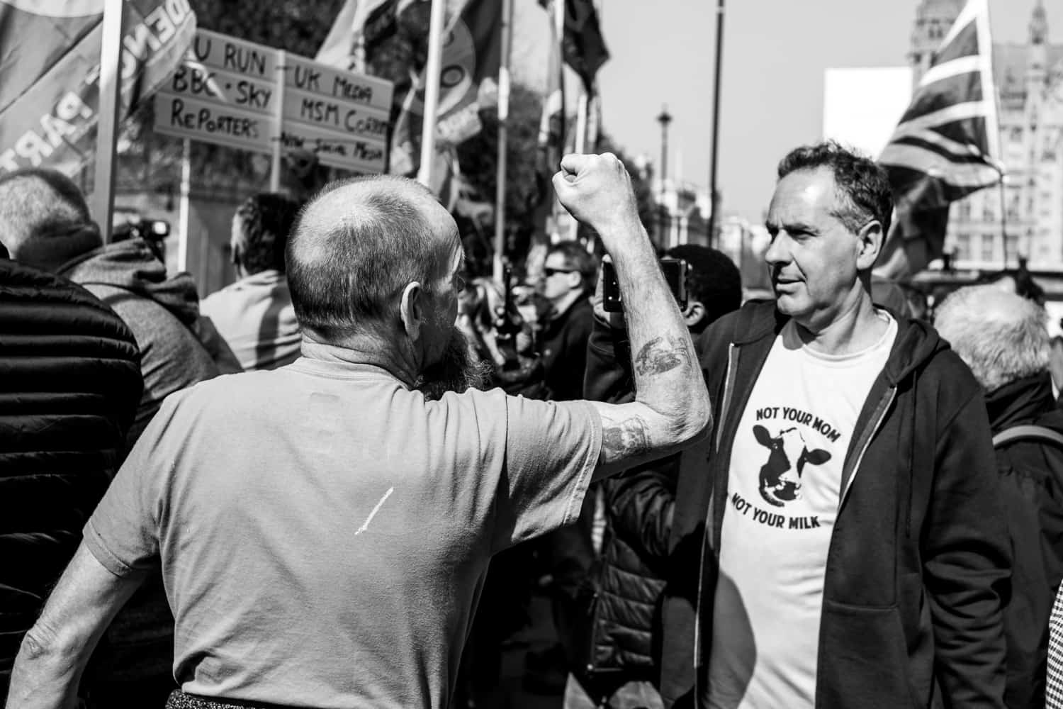 The gent on the right had a megaphone and was railing against more than Brexit – the whole concept of government, really. More an anarchist than a Brexiteer. The guy on the left wanted him to shut up.