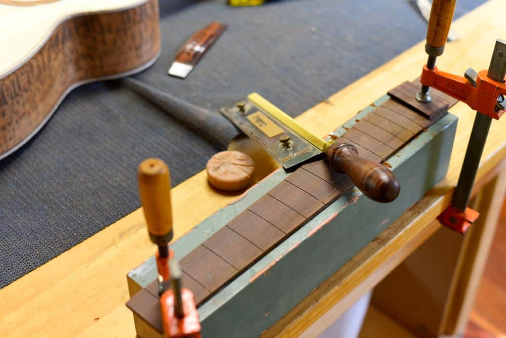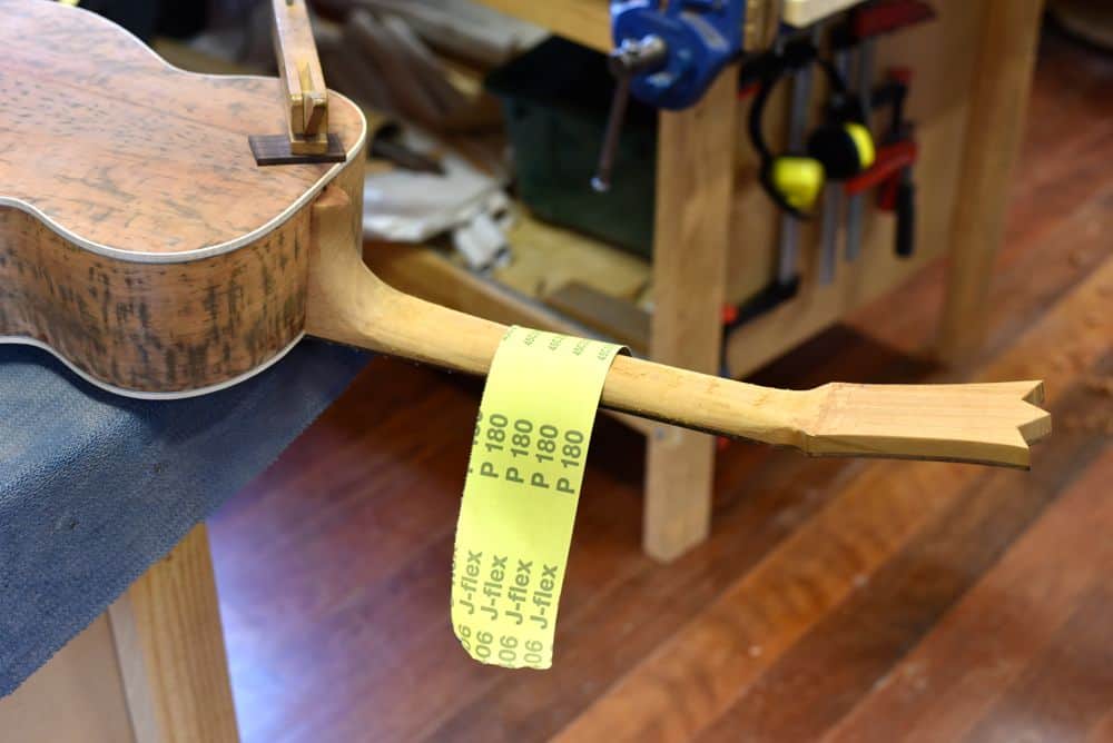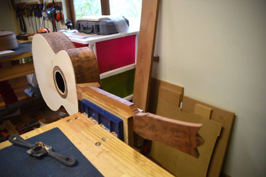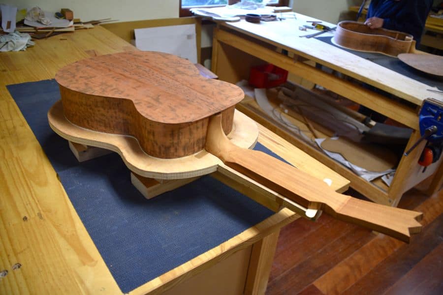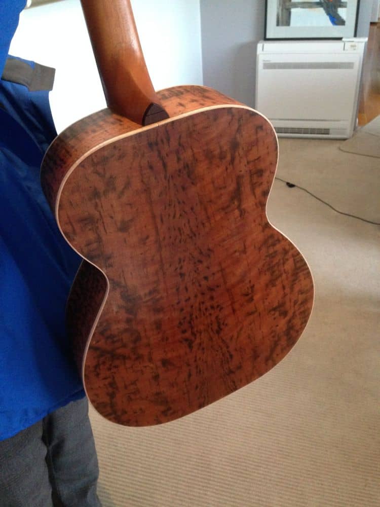 My three week intensive course cost $2,800 plus $350 for the timber that I used and $140 for the Schaller tuners. There were less expensive options in terms of timber, but I wanted to use tiger myrtle because I understood it would have good sonic qualities, because it’s now in limited supply and because I liked the look of the timber. 3 out of the 4 other participants doing the course with me also chose tiger myrtle. I chose the Schaller tuners from a wide variety of options available at StewMac (luthier supplier based in the US).