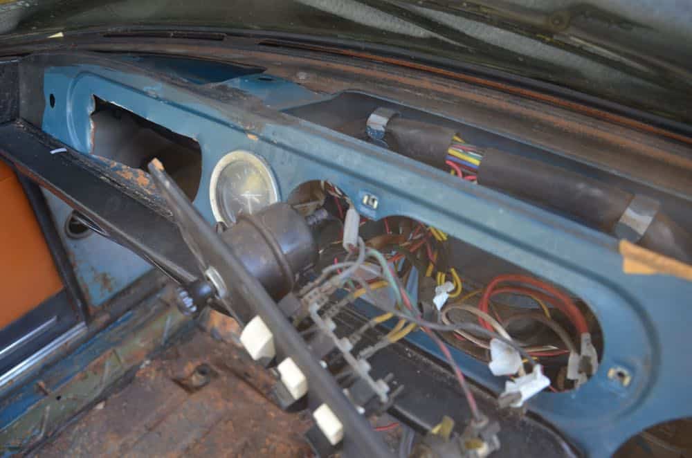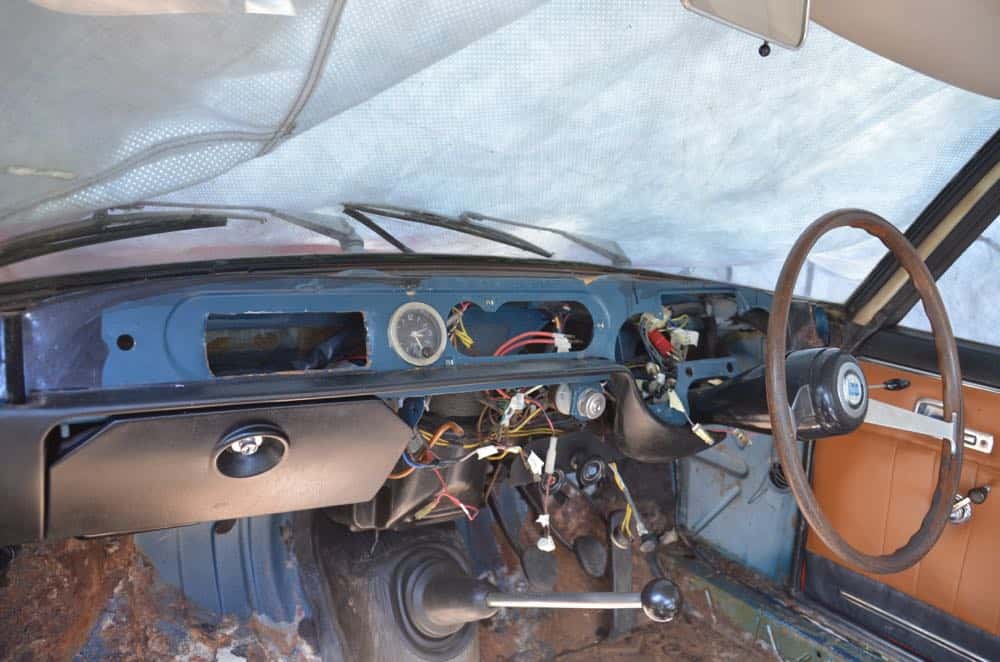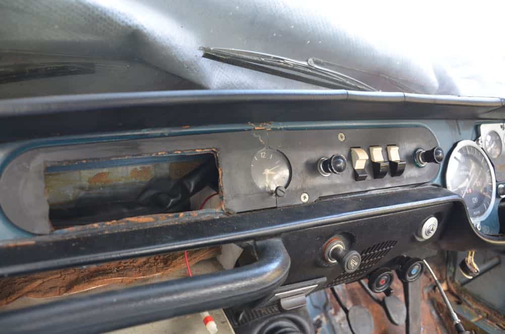 My first job was to remove the clock from the dashboard, something I couldn’t figure out initially but took all of about two minutes once I saw the fixings at the back of the bracket. The dashboard is now completely clear of instruments and is just a mess of wires. And heating stuff.